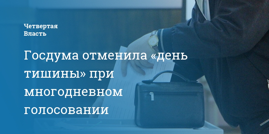 В России при многодневном голосовании предвыборная агитация сможет продолжаться вплоть до начала первого дня выборов. Закон об отмене «дня тишины» приняла сегодня, 22 апреля, Госдума в окончательном чтении.