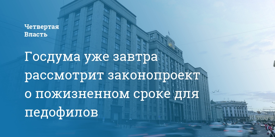 Госдума уже завтра рассмотрит законопроект о пожизненном сроке для педофилов