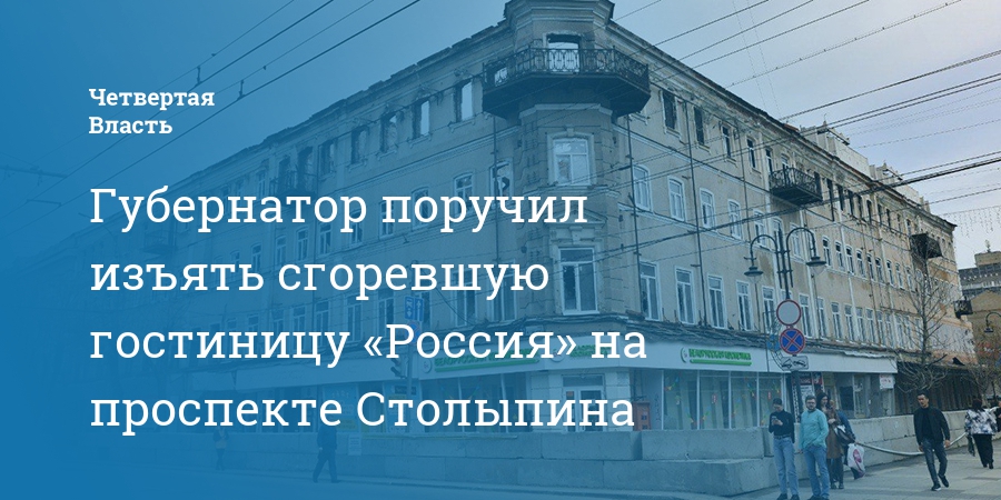 Губернатор поручил изъять сгоревшую гостиницу «Россия» на проспекте Столыпина