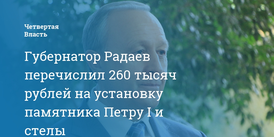 Губернатор Радаев перечислил 260 тысяч рублей на установку памятника Петру I и стелы