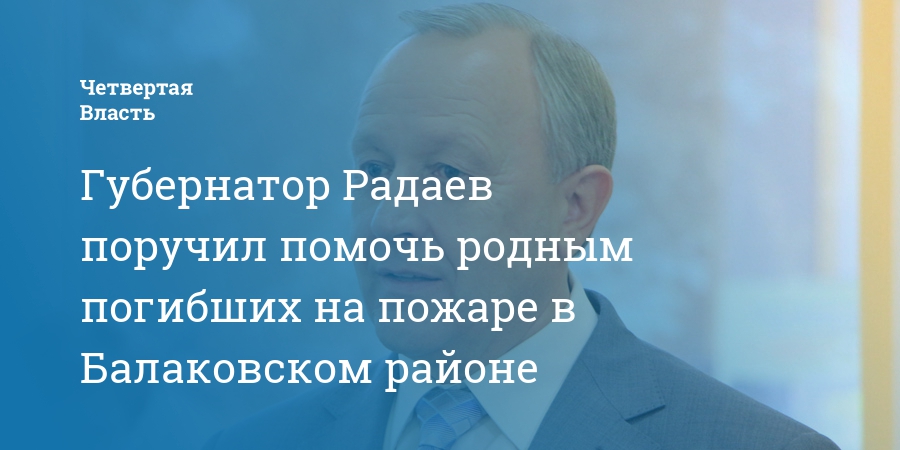 Губернатор Радаев поручил помочь родным погибших на пожаре в Балаковском районе