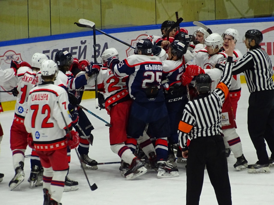 Хоккеисты молодежного «Кристалла» устроили массовую драку с соперником на льду