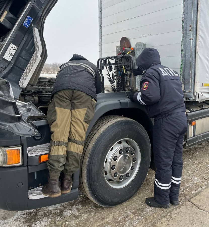 Инспекторы ГИБДД помогли замерзшим водителям большегрузов