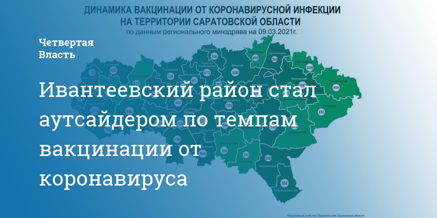 Ивантеевский район занял самое последнее место в Саратовской области по темпам вакцинации от коронавируса. Об этом сообщает оперативный штаб при правительстве региона.