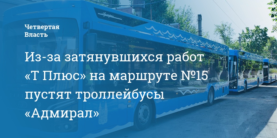 Из-за затянувшихся работ «Т Плюс» на маршруте №15 пустят троллейбусы «Адмирал»