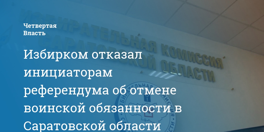 Решение было принято сегодня на заседании, которое прошло в дистанционном формате. 2 марта в комиссию поступило ходатайство от гражданина о регистрации группы, которая хотела поднять вопрос об отмене воинской обязанности в области (вопрос был сформулирован так: «Согласны ли вы с тем, чтобы в Саратовской области была отменена воинская обязанность?»).