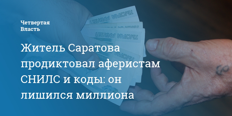 Житель Саратова продиктовал аферистам СНИЛС и коды: он лишился миллиона