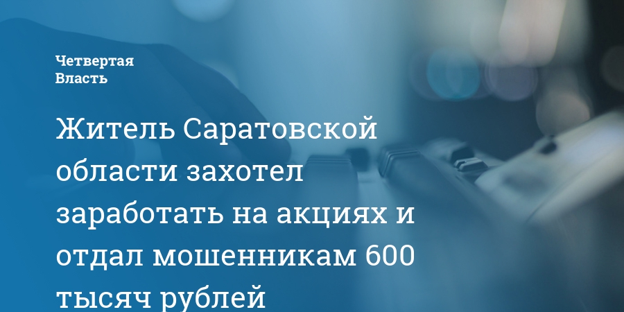 Житель Саратовской области захотел заработать на акциях и отдал мошенникам 600 тысяч рублей