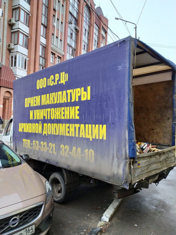 Книги валялись в кузове грузовика с надписью «Прием макулатуры и архивной документации». Автор поста в «Фейсбуке*» Александр Репин пояснил, что дело происходило возле корпуса областной научной библиотеки на улице Челюскинцев.