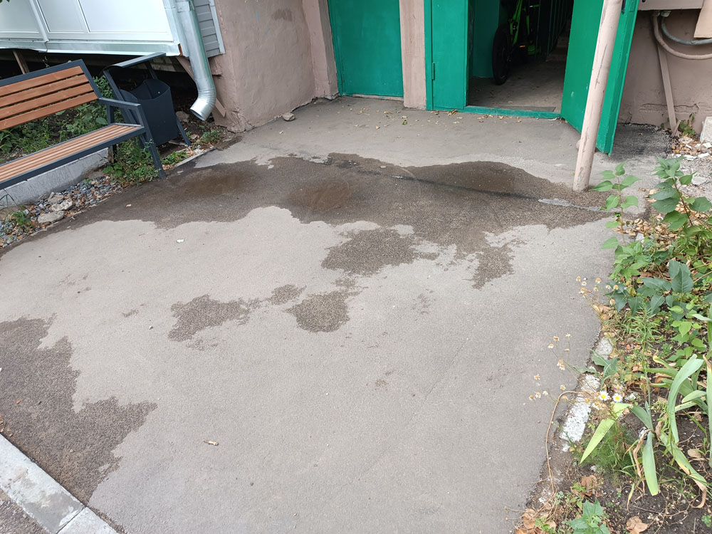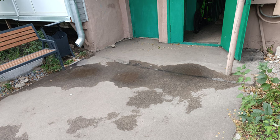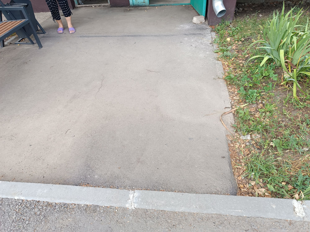 На Абрикосовой в рамках программы по ремонту привели в порядок 3 смежных территории - Абрикосовая, №1, №3 и №5. Дворовый проезд был заасфальтирован хорошо, но из-за сложного рельефа он находится выше входных групп к подъездам. С этим и связана проблема, которую не могут решить жители. Водоотведение с входных групп в ходе ремонта, несмотря на старание, подрядчику обеспечить не удалось.