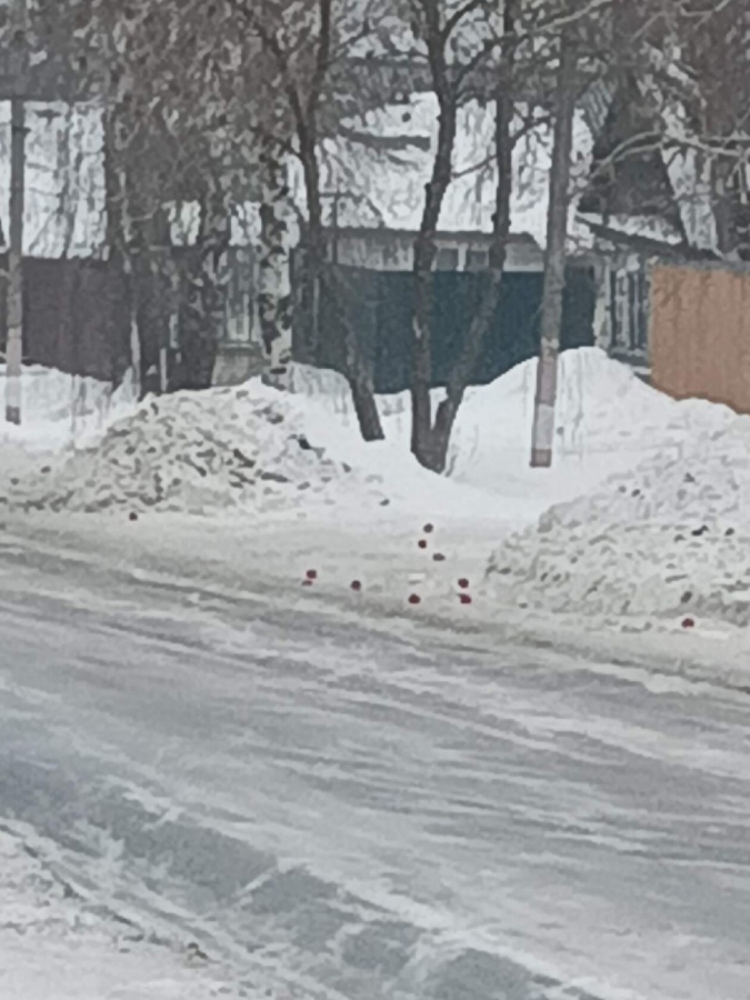 Сегодня, 10 февраля, в Петровске Саратовской области местные жители заметили на проезжей части подозрительные красные шары. Об этом сообщили в пресс-службе районной администрации.