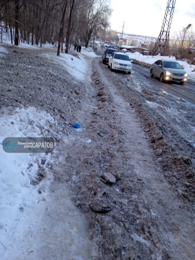 Саратовцы вынуждены пробираться к остановкам «козьими тропами» и по проезжей части из-за неубранной наледи. Как сообщают очевидцы в социальных сетях, в некоторых случаях снег и лед не просто не убрали, но и будто специально накидали, совершенно не подумав о пешеходах.