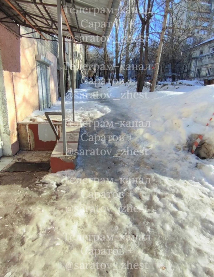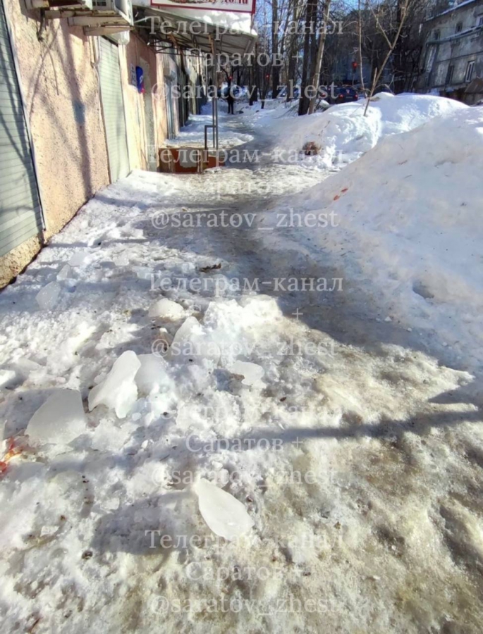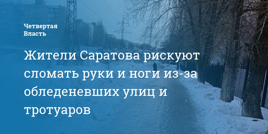 Жители Саратова рискуют сломать руки и ноги из-за обледеневших улиц и тротуаров