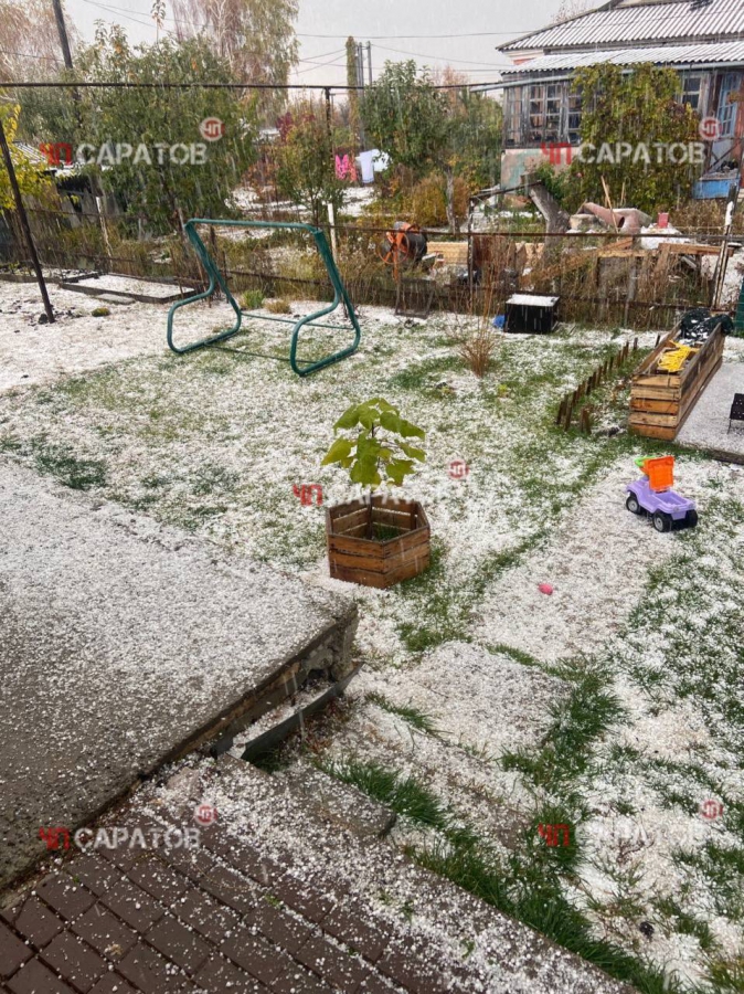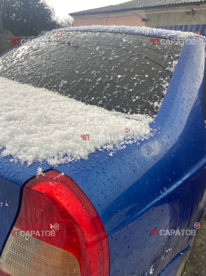 Жители Саратова и области сообщают о выпадении крупного града и снега. Очевидцы размещают фото и видео в социальных сетях.