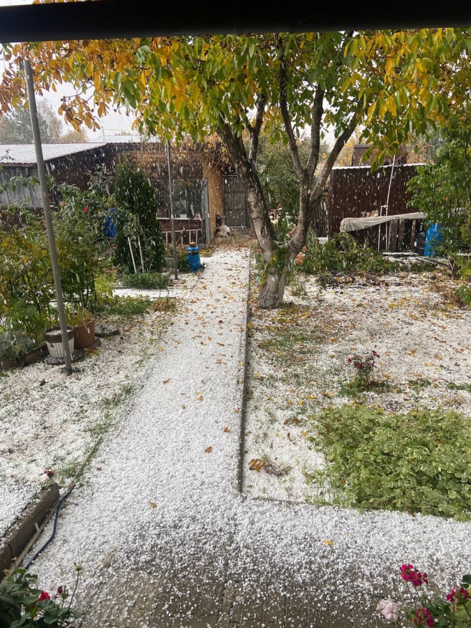 Саратовцы делятся кадрами с крупным градом и первым снегом, который прошел сегодня по городу и окрестностях.