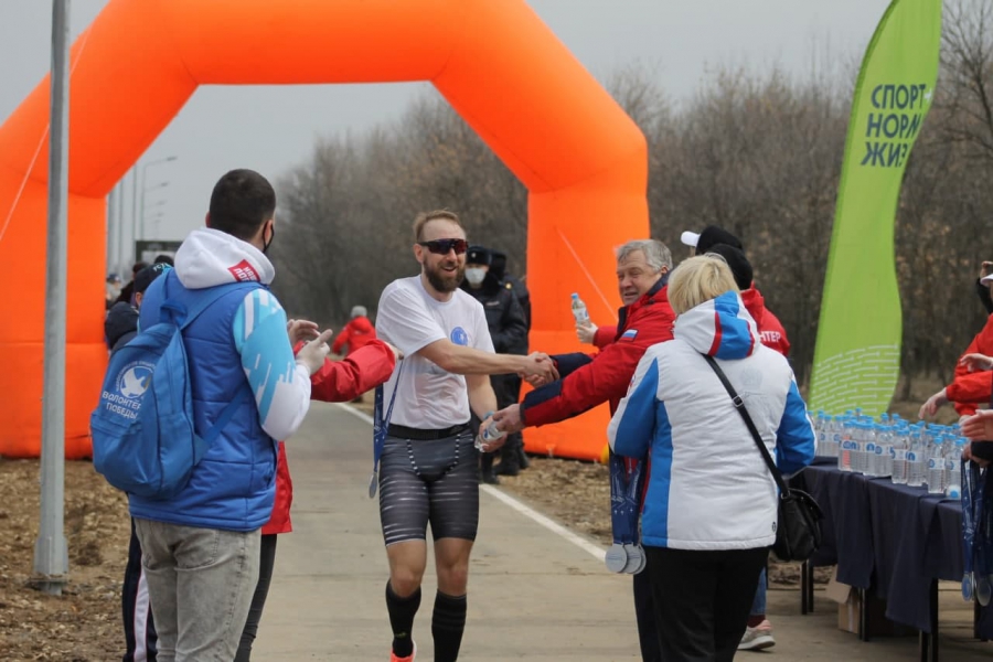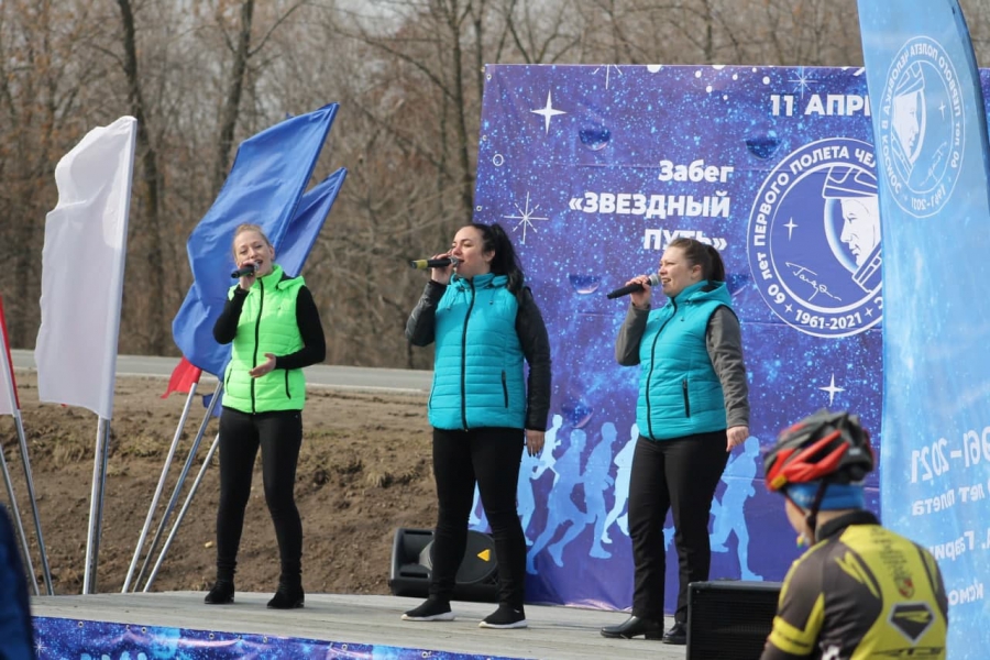 Спортсмены стартовали у села Квасниковка ровно в 10.55 - в это время спускаемый аппарат с Юрием Гагариным 60 лет назад опустился на саратовскую землю под Энгельсом. Сперва стартовали велосипедисты (акцию символично назвали «Поехали»), через несколько минут бегуны («Саратовский марафон «Звездный путь»). На всем протяжении пути стояли медики и полиция. Среди спортсменов корреспондент 4В заметил и инвалидов (они бежали часть пути), и детей, а также людей в импровизированных скафандрах и почему-то рогатых шлемах.