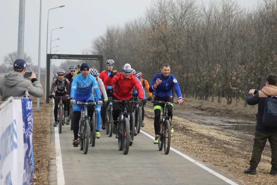 Сегодня утром в Энгельсском районе Саратовской области прошли легкоатлетический забег и велопробег, приуроченные ко Дню космонавтики. Празднично-спортивные мероприятия проходят по новой почти 14-километровой велодорожке в открывшийся вчера Парк покорителей космоса.