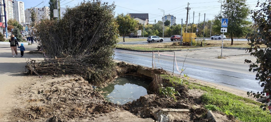 По словам автора обращения, в микрорайоне Юбилейный на улице Усть-Курдюмской (в районе ТЦ «Синий Кит») после работ, проведенных ресурсоснабжающими организациями, на пешеходной зоне остались большие ямы. Некоторые из этих котлованов наполнены грязной мутной водой, огорожены старыми металлическими заборчиками с разорванными предупредительными лентами, другие вовсе не имеют достаточного количества ограждений - причем с пешеходной зоны. Кроме того, ресурсники выкопали большой куст, который теперь лежит и засыхает на солнце.