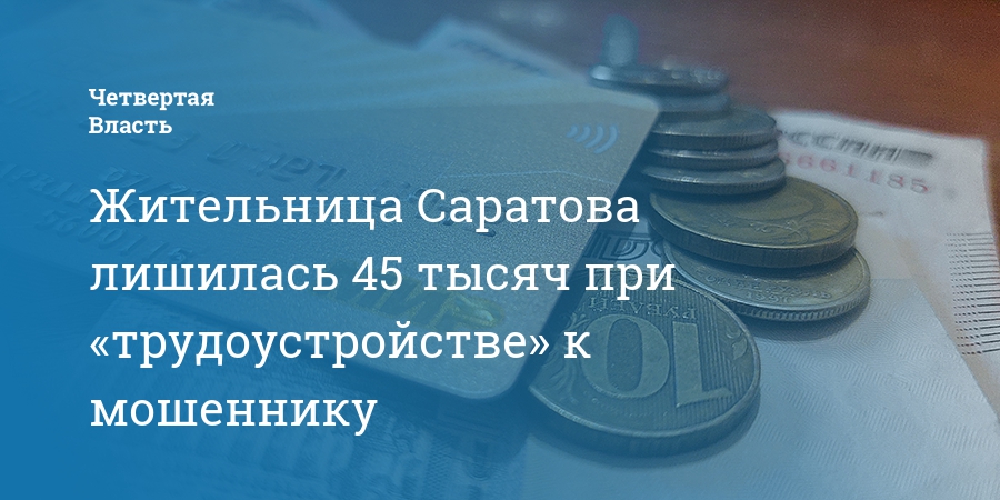 В Заводском районе Саратова местная жительница при устройстве на работу отдала почти 45 тысяч рубелей мошенникам. Об этом сообщили сегодня в региональном ГУ МВД.