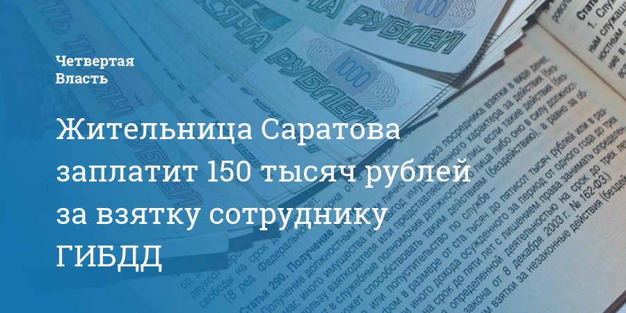 Жительница Саратова заплатит 150 тысяч рублей за взятку сотруднику ГИБДД