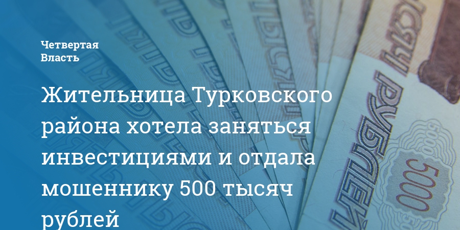 Жительница Турковского района хотела заняться инвестициями и отдала мошеннику 500 тысяч рублей