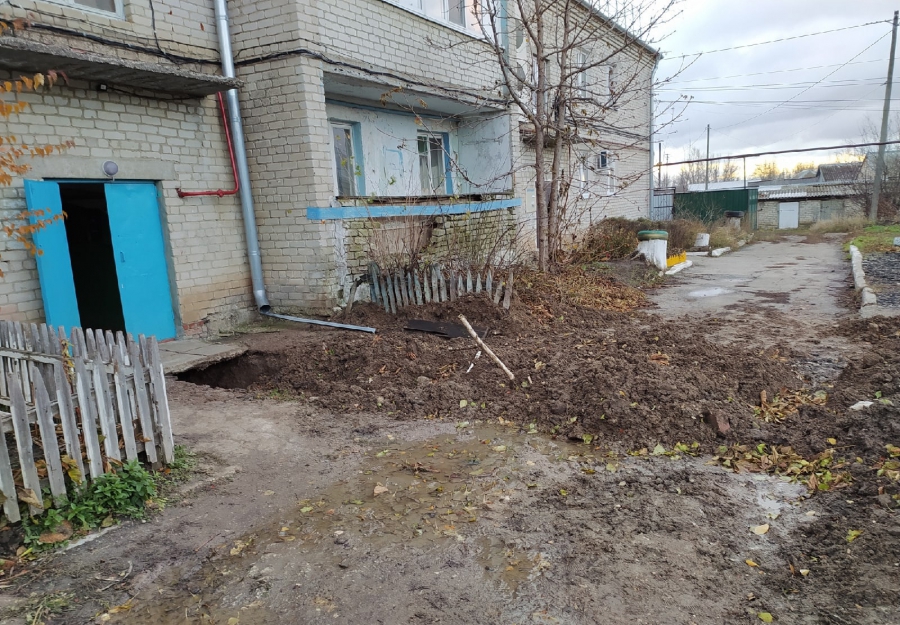 Как рассказала горожанка, после обращения начальник управляющей компании пояснил, что для устранения ямы не имеется необходимого песка и рабочих. О проблеме 14 ноября заявляли и в администрацию города. Спустя пять дней, 19 ноября, прибывшие рабочие разрыли яму и выяснили, что забиты два центральных колодца (данного дома и соседнего). Из колодца откачали воду, однако после этого никаких действий по устранению проблемы не предпринималось. В подвале и колодцах осталось много воды, а яма обваливалась.