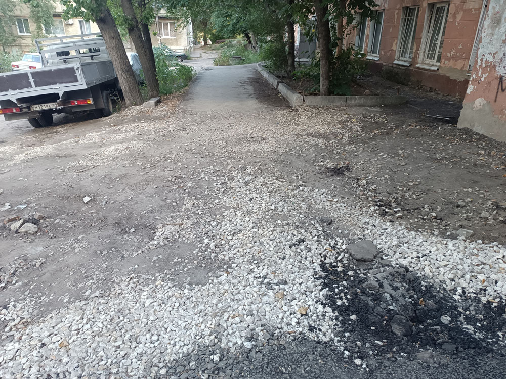 Во время инспекции по отремонтированным дворовым территориям к сотрудникам «Дорожного контроля» обратились жители дома по Курдюмской, 92/2. Дело в том, что их двор был отремонтирован несколько дней назад, но по сути он представляет собой единое пространство с дворовой территорией соседнего дома 92/1. Дом 92/1 признан аварийным, по этой причине его двор в программу ремонта не попал.