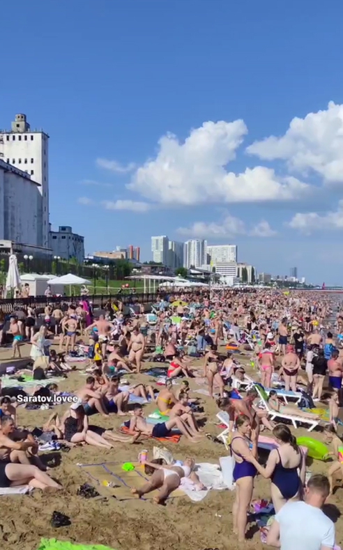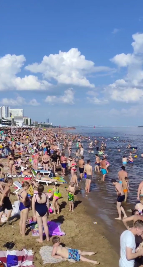 Многие горожане решили провести воскресенье, загорая на июньском солнце и прохлаждаясь в реке. Многие саратовцы отправились на пляж покорителей Волги. В результате некоторым людям из-за нехватки места пришлось загорать стоя. А те, кому все же удалось разложить покрывало, лежали в нескольких сантиметрах от соседей.