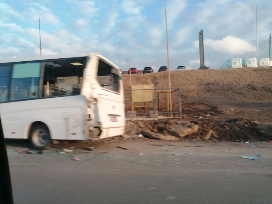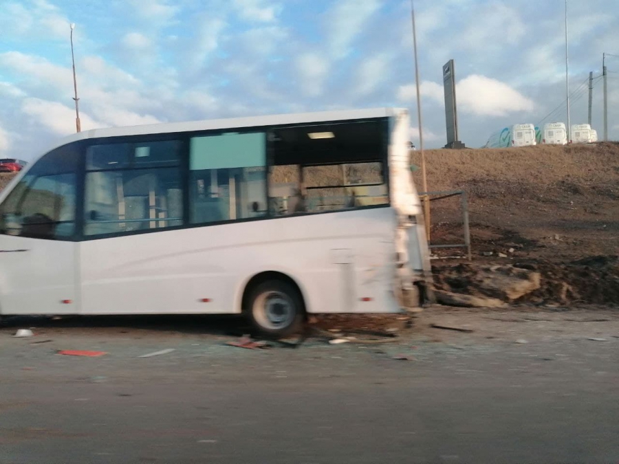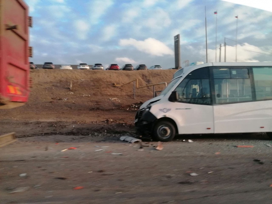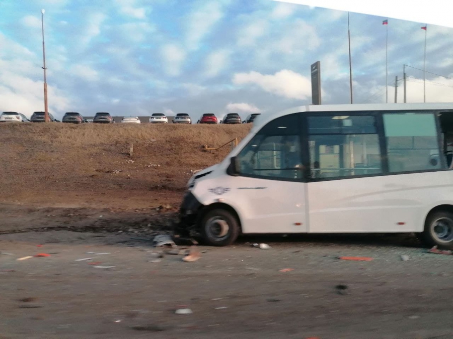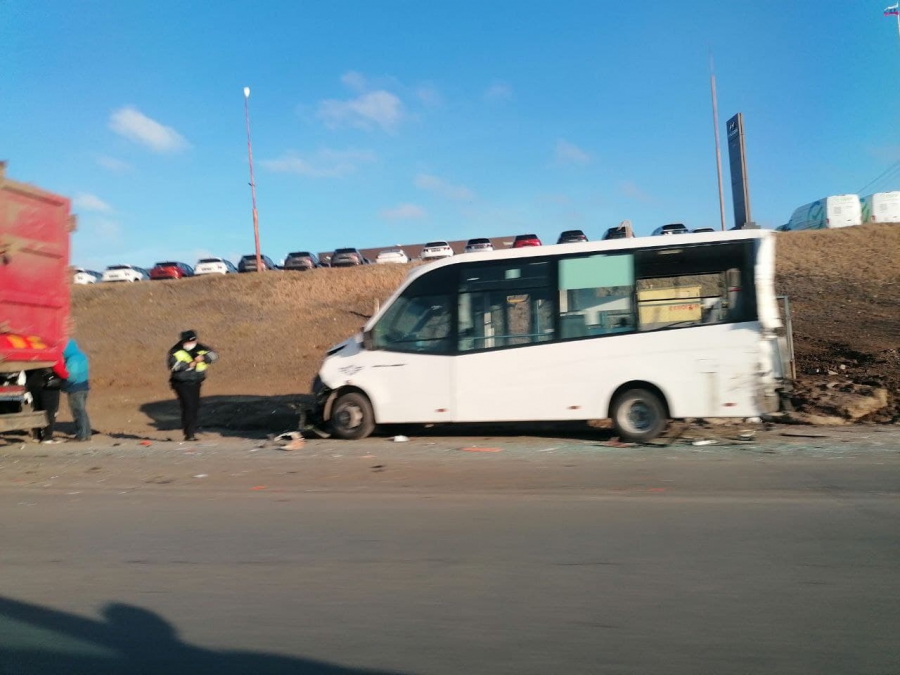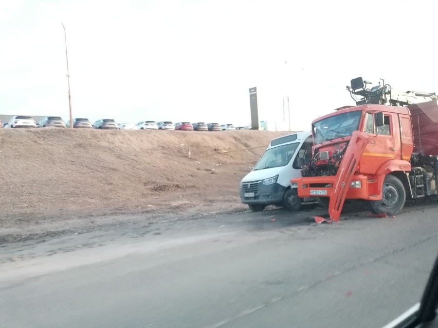 На выезде из Саратова в районе микрорайона Елшанка случилось ДТП с участием спецтехники и двух микроавтобусов.