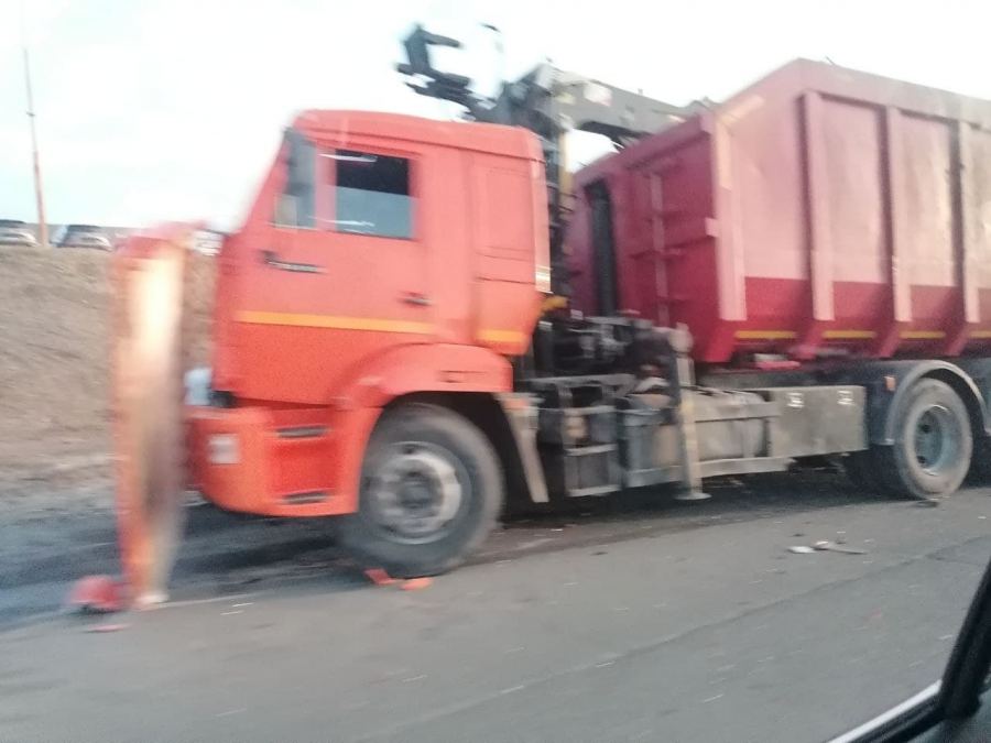 По словам очевидца, один из двух автомобилей «ГАЗ» получил более серьезные повреждения- у него деформирована задняя левая сторона, выбиты стекла и сломана фара. У мусоровоза оторвало капот, сломан бампер с правой стороны.