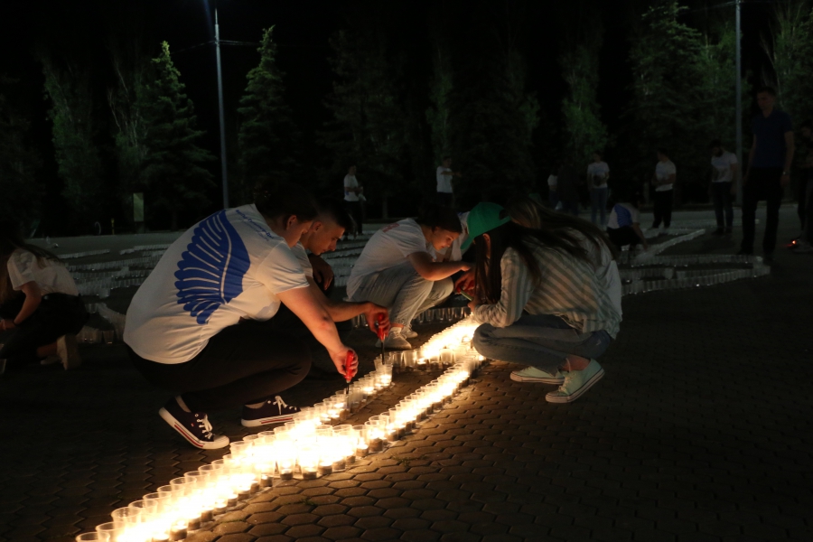 Зажжение свечей началось в 2.00. 70 волонтеров зажгли «Огненную картину войны» и почтили память всех героев Великой Отечественной войны. Как рассказал руководитель городского отделения «Молодой Гвардии» Данила Жулидов, подобная акция в области проводится уже в 6 раз.