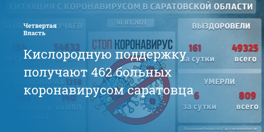 В Саратовской области кислородную поддержку получают 462 саратовца, заболевших коронавирусом. Об этом сообщает оперативный штаб.