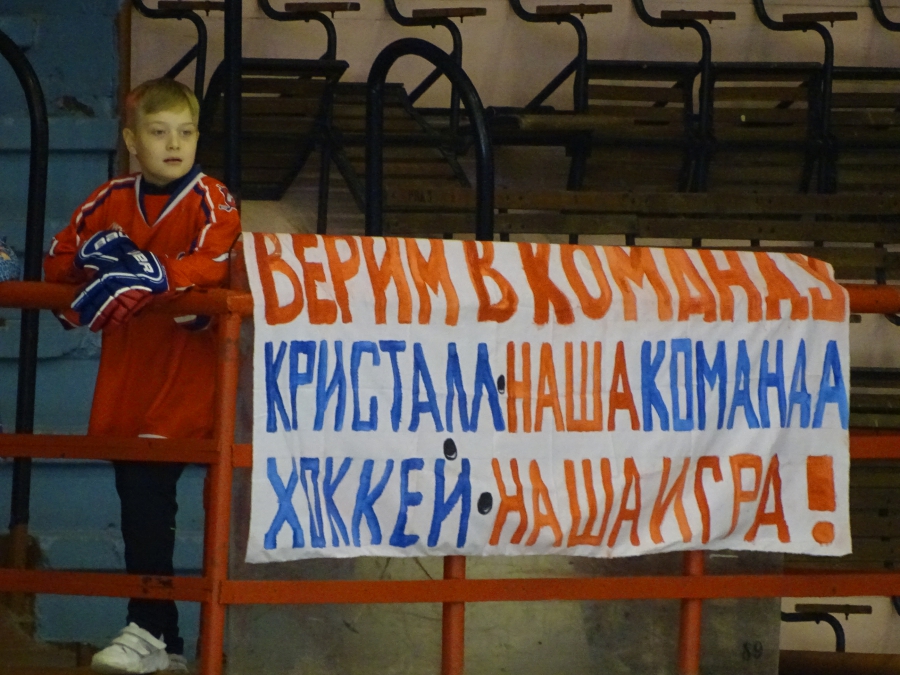 В фойе ЛДС болельщикам была предложена фотовыставка «Монеты славы». На полутора десятках стендов размещены фотографии монет, на которых изображены звезды отечественного спорта и символика самых славных для России спортивных событий. А фанаты «Кристалла» во время матча представили свой вариант бюллетеня для Всероссийского дня голосования.