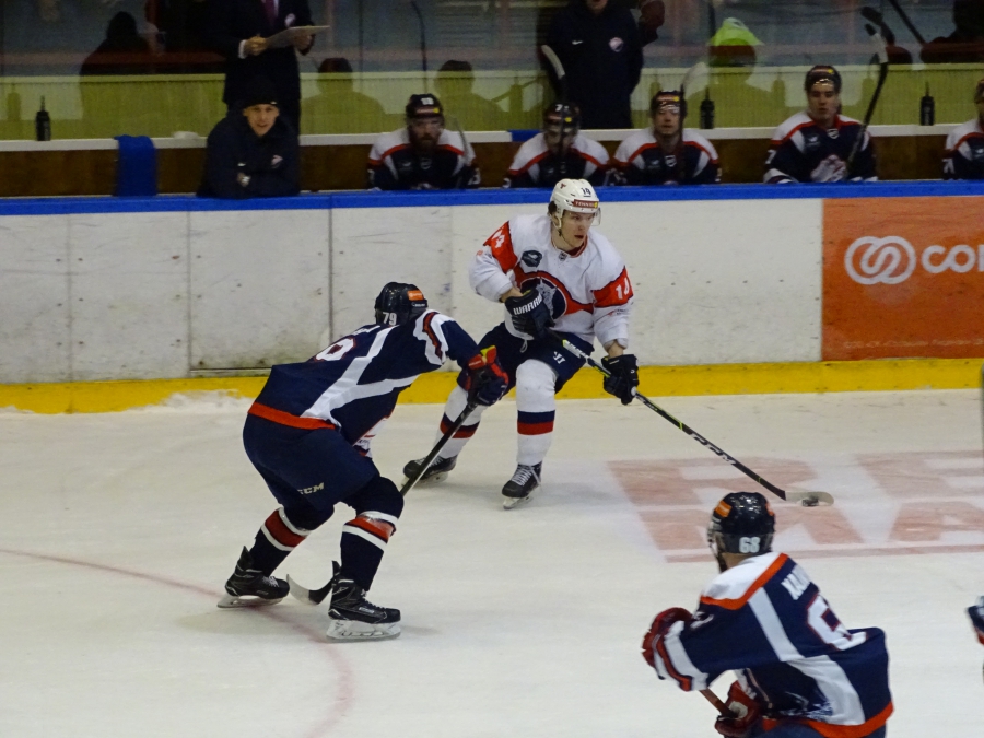 Хозяева открыли счет на 11-й минуте - отличился Ранис Миргалиев. На 15-й минуте успех развил Дмитрий Кормилов, 22 секунды спустя отличился Александр Юшков. При счете 0:3 гости поменяли вратаря и на предпоследней минуте первого периода успели отыграть один гол (отличился Павел Синявский).