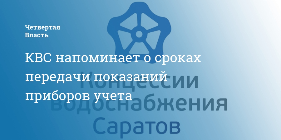 Регулярная и своевременная передача показаний приборов учета – основание для правильных начислений за услуги водоснабжения и водоотведения. ООО «Концессии водоснабжения – Саратов» напоминает своим абонентам, что передача показаний индивидуальных приборов учета (ИПУ) осуществляется до 25 числа текущего месяца для жилых помещений и нежилых помещений, располагающихся в многоквартирных домах. До конца месяца осуществляется передача показаний приборов учета для нежилых отдельно стоящих помещений (юридические лица).