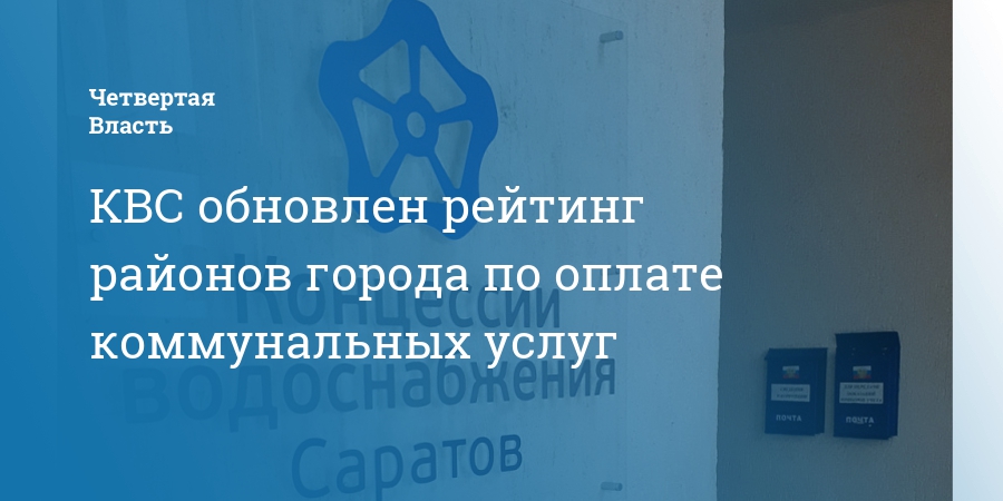 ООО «Концессии водоснабжения – Саратов» обновило рейтинг районов города по оплате услуг водоснабжения и водоотведения. При составлении рейтинга учитывалась история погашения платежей, процент собираемости и задолженность управляющих организаций, ТСЖ и ЖСК. Места в рейтинге определены пропорционально количеству управляющих жилым фондом компаний, обслуживающих дома на территории каждого конкретного района.