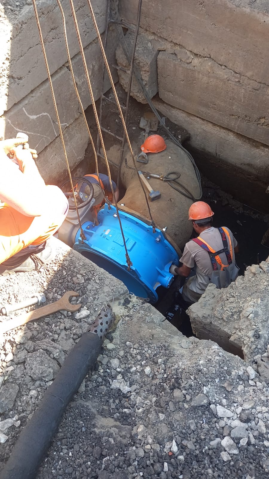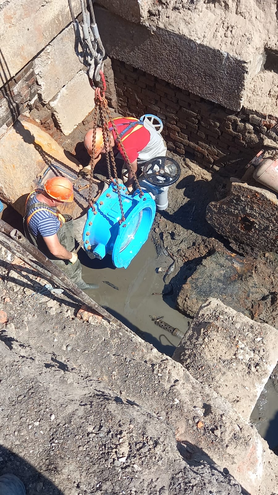На текущий момент по адресам 5-й Товарный пр./ул. Б. Садовая, Б. Садовая/ул. Соколовая заменены 2 запорных арматуры d150 мм и d200 мм. На станции второго подъема смонтирована сбросная задвижка d150 мм, установлен новый затвор d1000 мм, ведутся сварочные работы. На водоводе по ул. Б.Садовая/ул. Вольская установлены новые затворы d600 мм, выполняются сварочные работы. Также установлен затвор d800 мм, производится монтаж патрубка с фланцем. По адресу: ул. 2-я Садовая, 97а ведутся работы по замене изношенного участка водопровода d800 мм. На ул. 1-я Садовая - Чапаева меняется выпуск d200 мм.