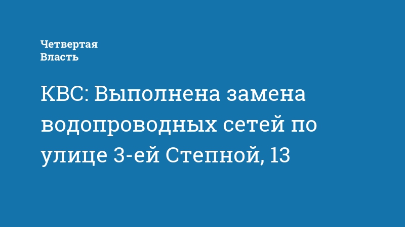 КВС: Выполнена замена водопроводных сетей по улице 3-ей Степной, 13