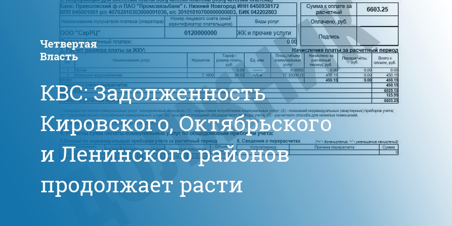 КВС: Задолженность Кировского, Октябрьского и Ленинского районов продолжает расти