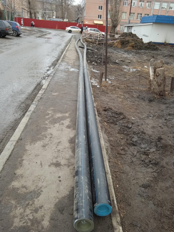 Прокладка новых сетей осуществлялась методом горизонтального направленного бурения (ГНБ), позволяющим максимально сохранить благоустройство территории. При ГНБ не требуется проведения масштабных земляных работ, т.к. специалисты протягивают новые трубопроводы через два котлована с помощью специальной буровой установки.