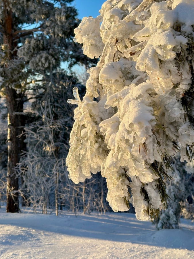 В Саратовской области ледяной дождь стал причиной массового падения деревьев, обрыва проводов, замерзания автомобилей и образования сказочной красоты в лесу. Информацию об этом опубликовали местные жители в социальных сетях.