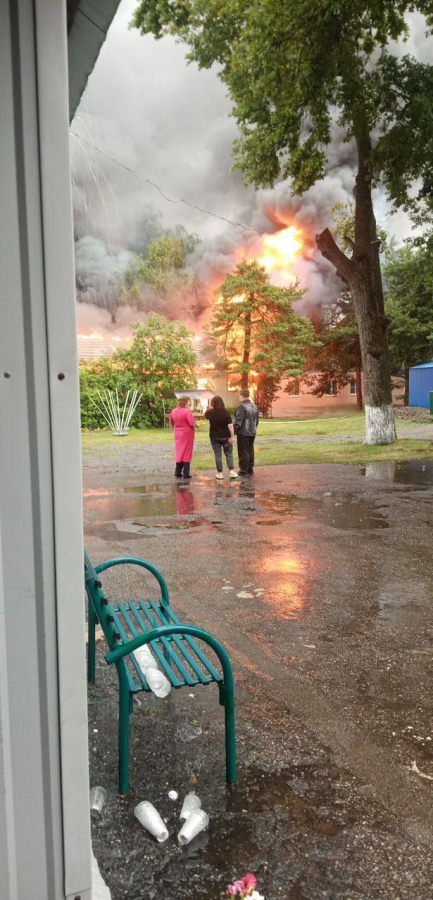 По словам Дубовенко, предварительная версия возгорания – удар молнии в дерево. Предполагается, что дальше огонь перекинулся на обшивку здания. Медпункт сгорел полностью, сейчас его перенесли в административное здание.
