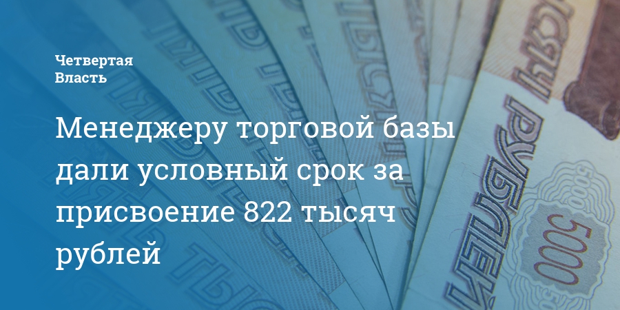 Менеджеру торговой базы дали условный срок за присвоение 822 тысяч рублей