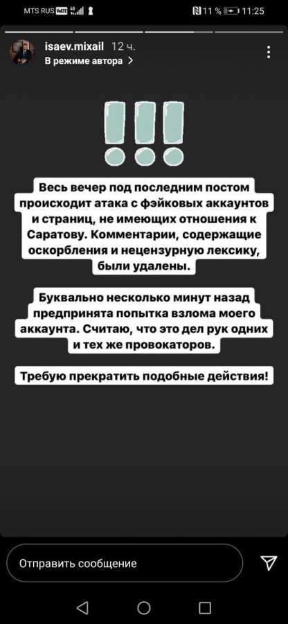 «Весь вечер под последним постом происходит атака с фейковых аккаунтов и страниц, не имеющих отношения к Саратову. Комментарии, содержащие оскорбления и нецензурную лексику, были удалены.