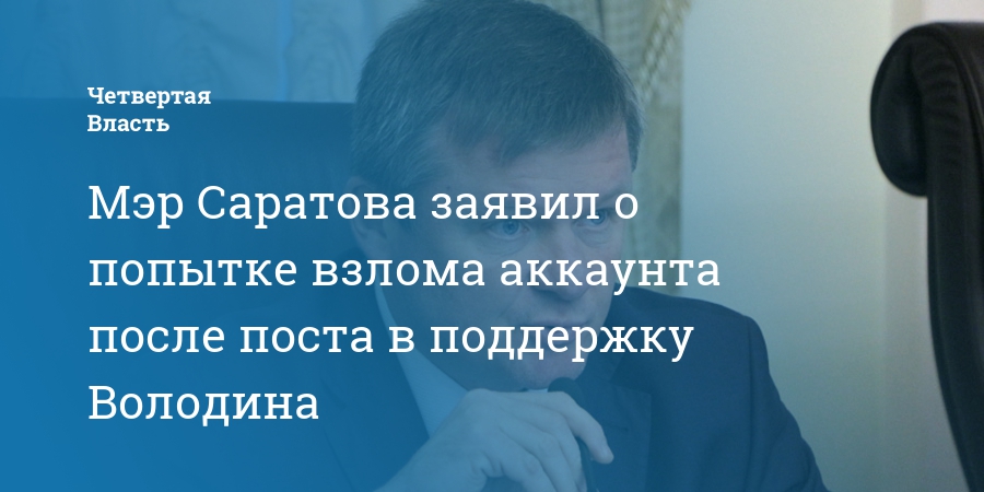 Мэр Саратова заявил о попытке взлома аккаунта после поста в поддержку Володина