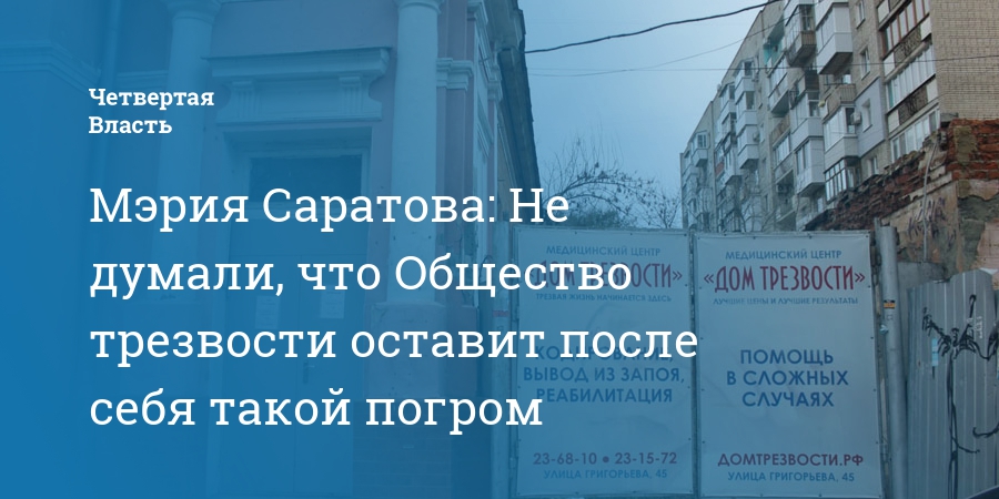 Мэрия Саратова: Не думали, что Общество трезвости оставит после себя такой погром