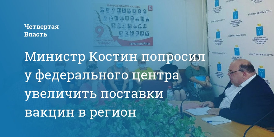 Сегодня, 29 июня, министр Костин, совместно с главными врачами саратовских ковид-госпиталей, провел совещание с главой федерального минздрава Михаилом Мурашко. Региональный министр отметил, что в последнее время в Саратовской области имеет дополнительная потребность в вакцине из-за повышенного спроса населения к иммунизации.