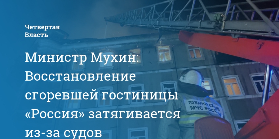 Министр Мухин: Восстановление сгоревшей гостиницы «Россия» затягивается из-за судов
