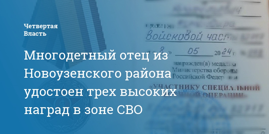 Многодетный отец из Новоузенского района удостоен трех высоких наград в зоне СВО