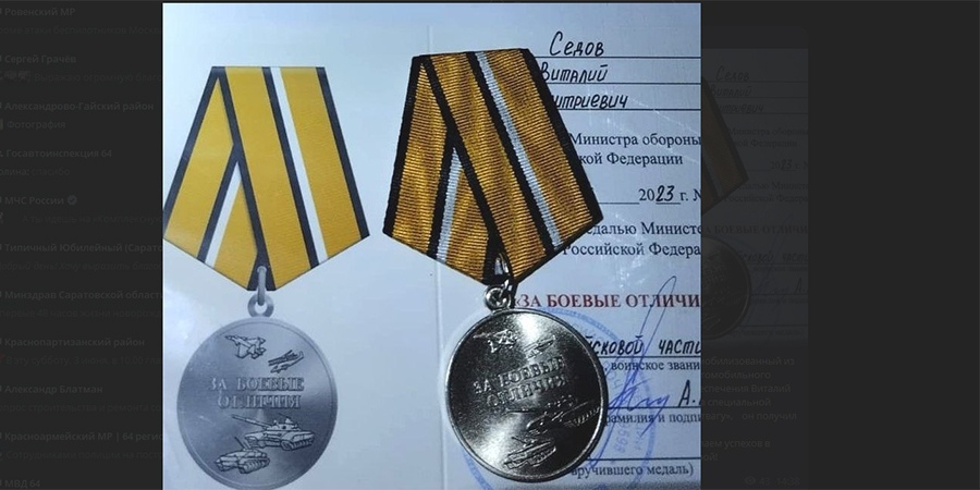 Жителя Ивантеевского района Саратовской области Виталия Седова, который участвует в специальной военной операции, отметили боевой наградой. Об этом сегодня, 30 мая, рассказали в районной администрации.